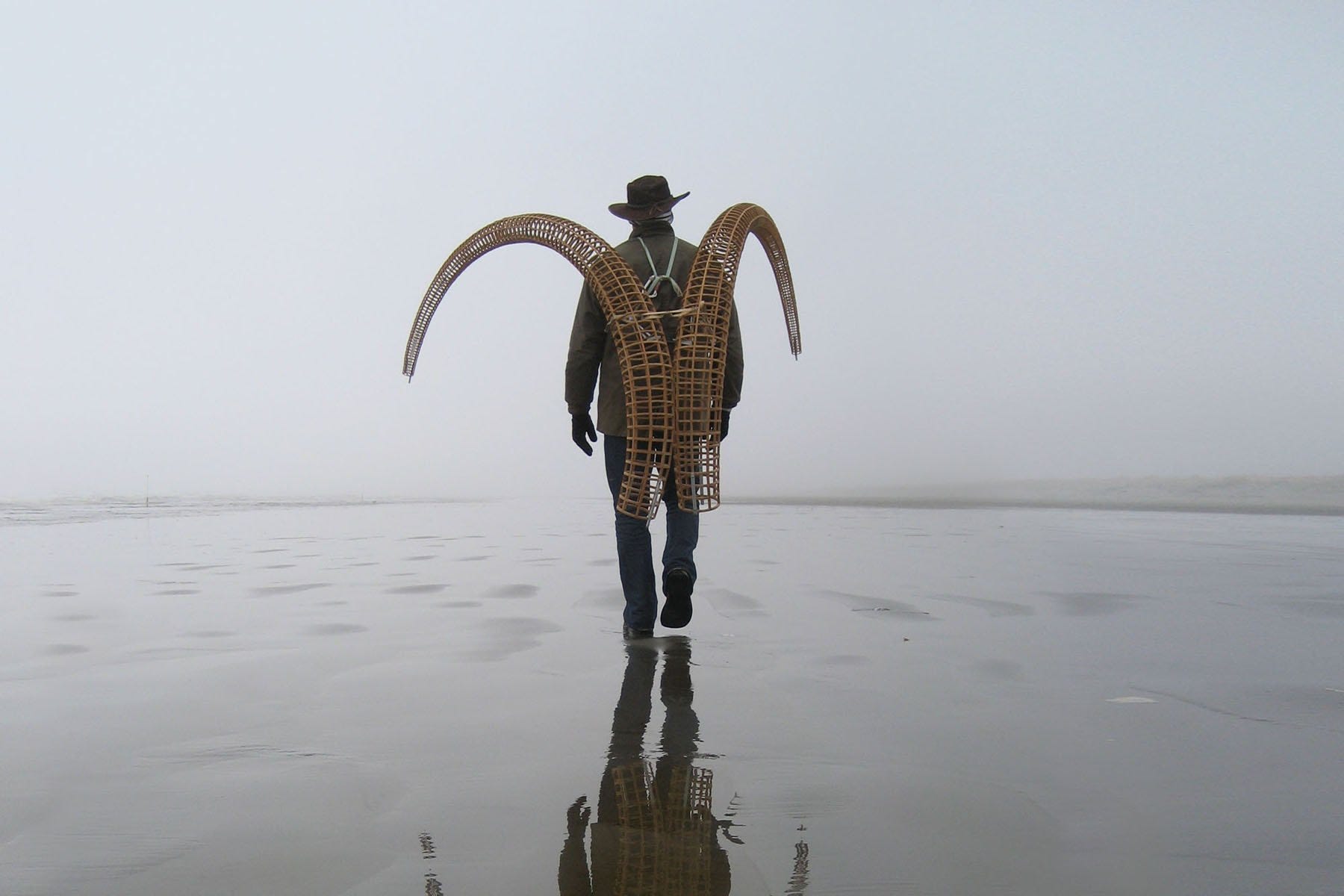 Throughout its journey it collected bugs, crustaceans, and bird poop. It was scoured by sun, water, and wind. It was strapped to his back. It was strapped to his truck. It was placed in a ravine. It became a dry and crusty thing when it was finally placed in a gallery:
