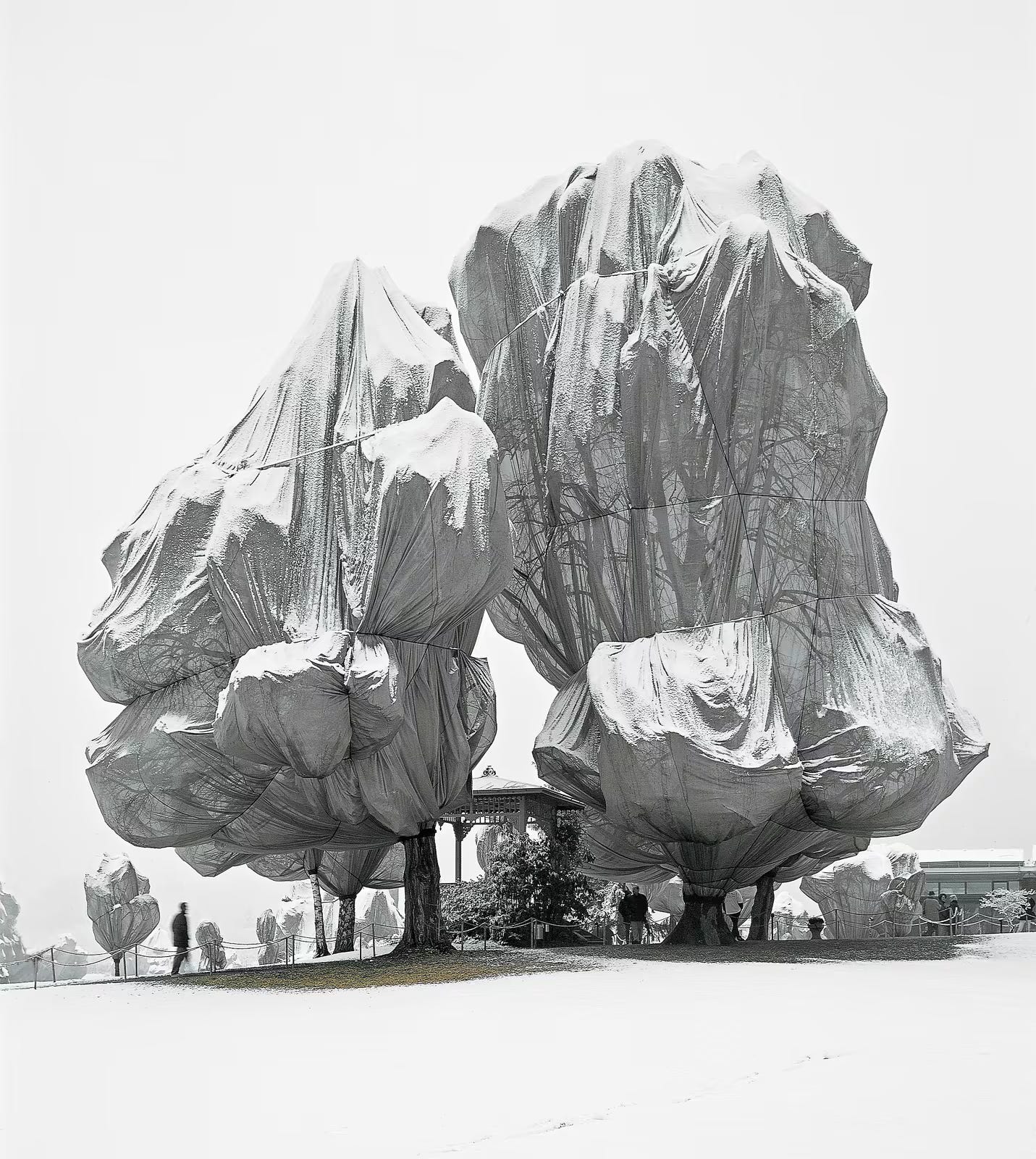 A note on how Christo and Jeanne-Claude date their work: each piece spans from the initial ideation until the completion. Most of the wrapped works only last a few days but the true work of art is all of the red tape they must cut through to create these brief moments.